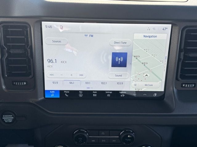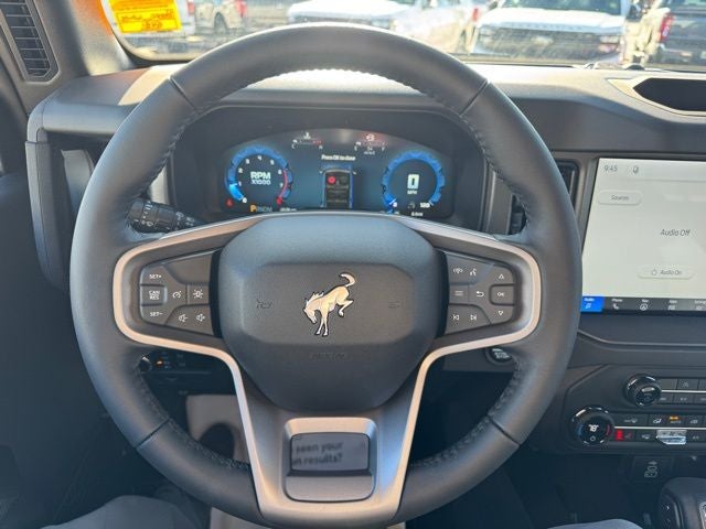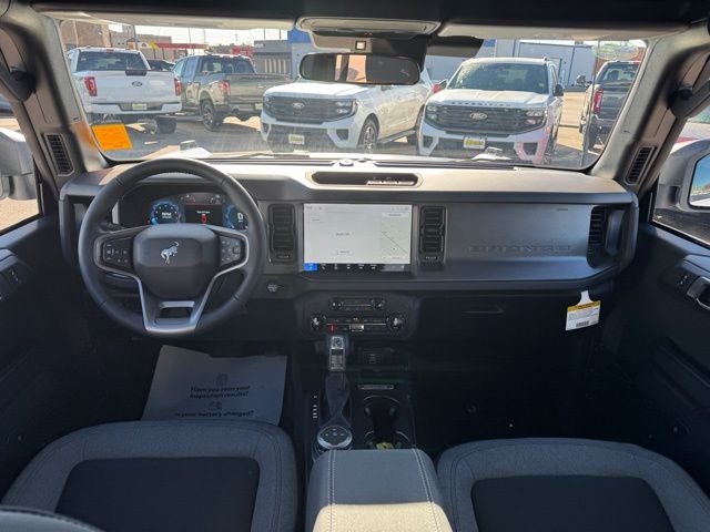 Bronco Big Bend, 4WD, Oxford White, Black Onyx Interior Cloth, 2-Door Intelligent Access with Lock/Unlock, AM/FM Stereo, Ambient Footwell Lighting, Black Appearance Package, Black Molded-in-Color Door Handles, Black Molded-in-Color Fender Flares, Black Molded-in-Color Sideview Mirror Caps, Black-Painted Molded-in-Color Grille, Cloth Bucket Seats, Connected Navigation, Driver and Front Passenger Illuminated Sliding Visor Vanity Mirrors, Dual Smart Charging USB Ports, Dual-Zone Electronic Automatic Temperature Control, Equipment Group 222A Mid Package, Ford Connectivity Package (1-Year Included), Front Row Heated Seats, Pro Power Onboard - 400W, Rear Parking Sensors, SiriusXM with 360L, SYNC 4, Wheels: 17 Carbonized Gray-Painted Aluminum.